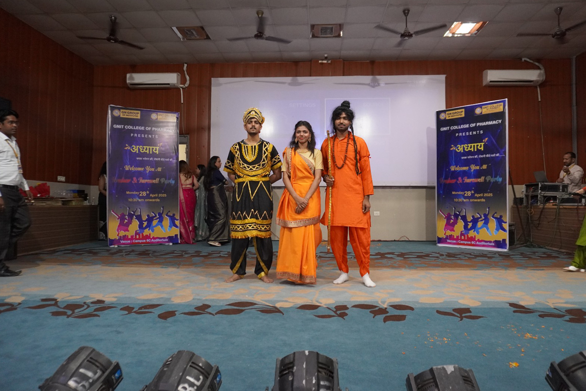 Grand Celebration of Fresher and Farewell Party at GNIT College of Pharmacy GN Group of Institutes, GNIT College of Pharmacy, Greater Noida, under the esteemed guidance and presence of Honorable Chairman Sir, Shri B L Gupta ji, hosted a combined Fresher and Farewell Party, Adhyay on 28th April 2025, creating a beautiful fusion of excitement, emotions, tradition and innovation.